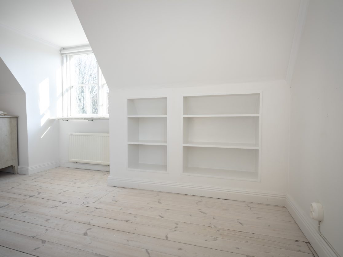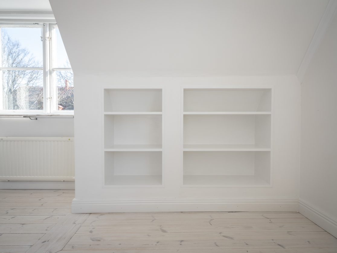 Platsbyggd hylla, utnyttjar oanvänt utrymme.