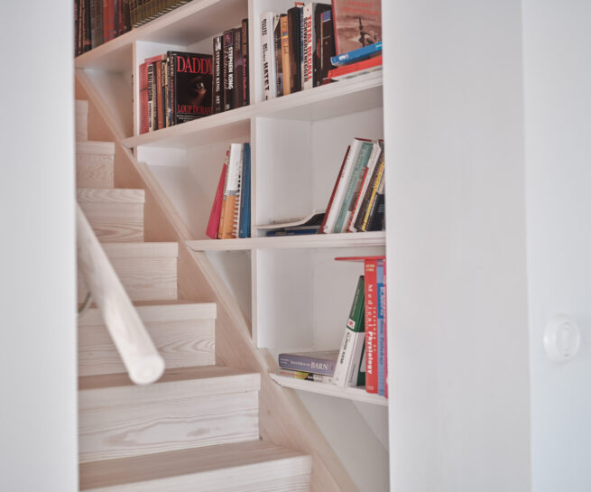 Vindstrapp med bokhylla